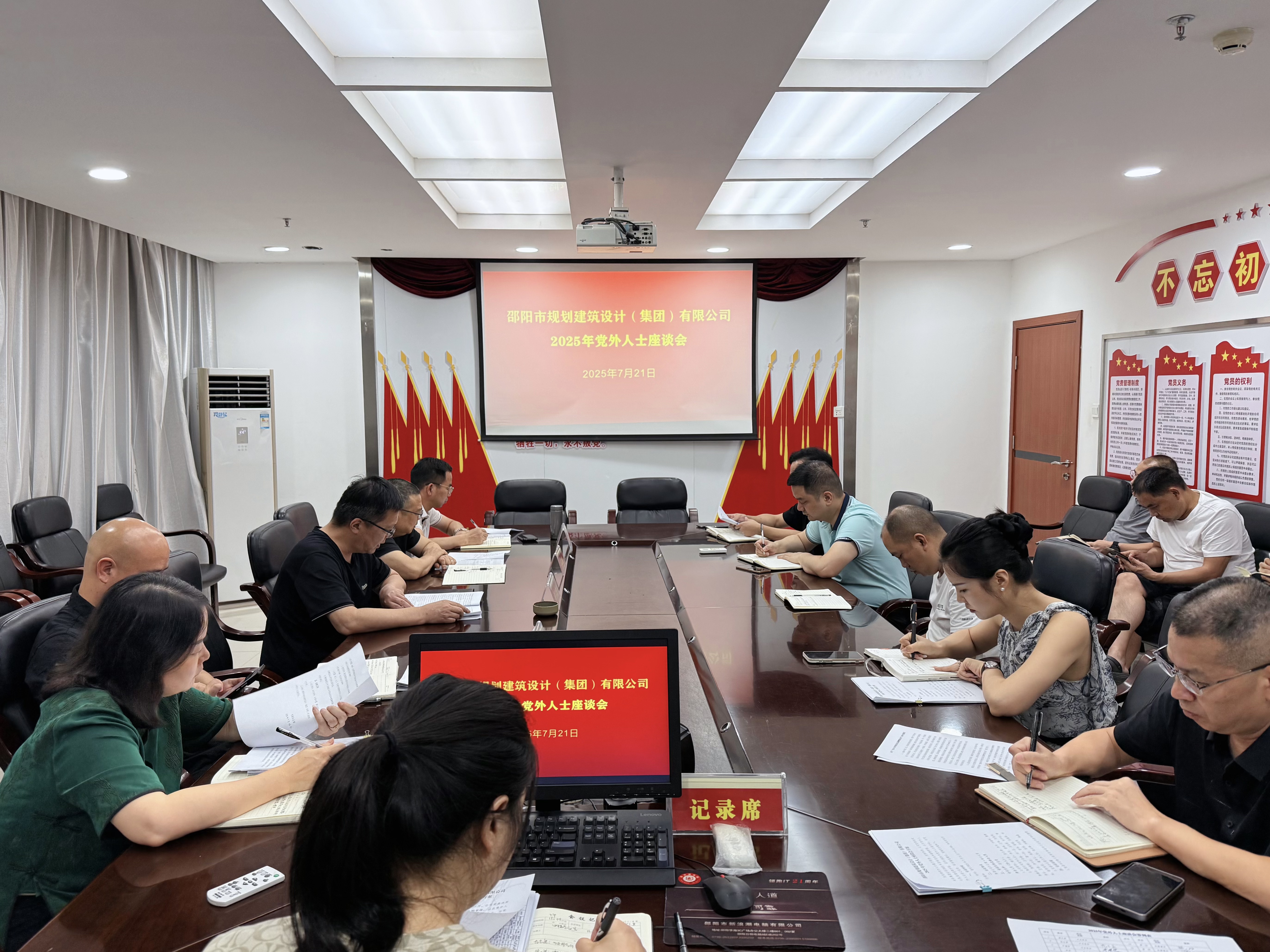 7月21日,邵陽(yáng)市規(guī)劃建筑設(shè)計(jì)(集團(tuán))有限公司召開(kāi)黨外人士座談會(huì)。黨委書(shū)記謝文波出席會(huì)議并講話,集團(tuán)班子成員范志勇、李慶、尹建軍、龔艷及民主黨派人士參加座談會(huì)。